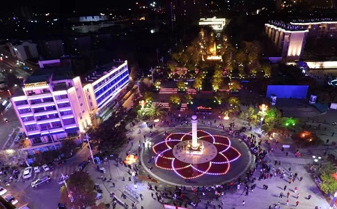 雙龍廣場(chǎng)地處石林縣城的中心,夜晚的雙龍廣場(chǎng)更顯壯麗,當(dāng)夜色彌漫廣場(chǎng)上的音樂(lè)噴泉塔瞬時(shí)亮起,黑夜中,各種樣式的變換,絢麗多彩的光影讓人目不暇接“月華連晝色,燈影雜星光。”人們?cè)诖笋v足停留或聊天說(shuō)笑,或拍照留念傾情邂逅一次屬于石林的浪漫